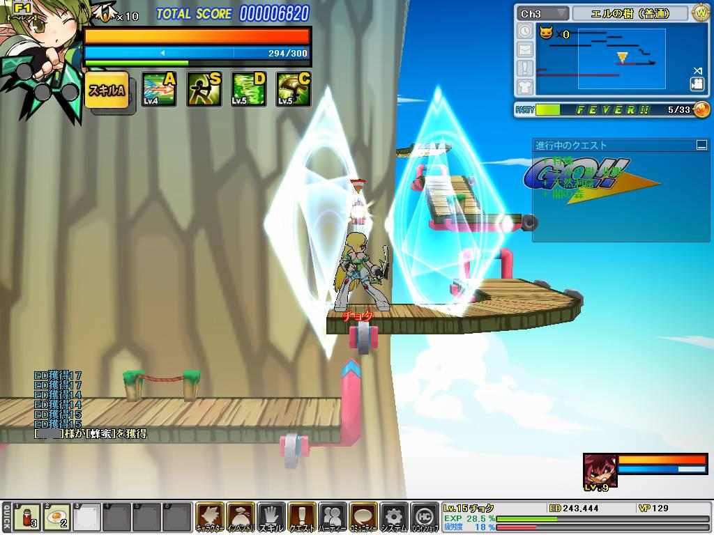 A,S,D,Cの4つのキーでスキルを発動させることができる。