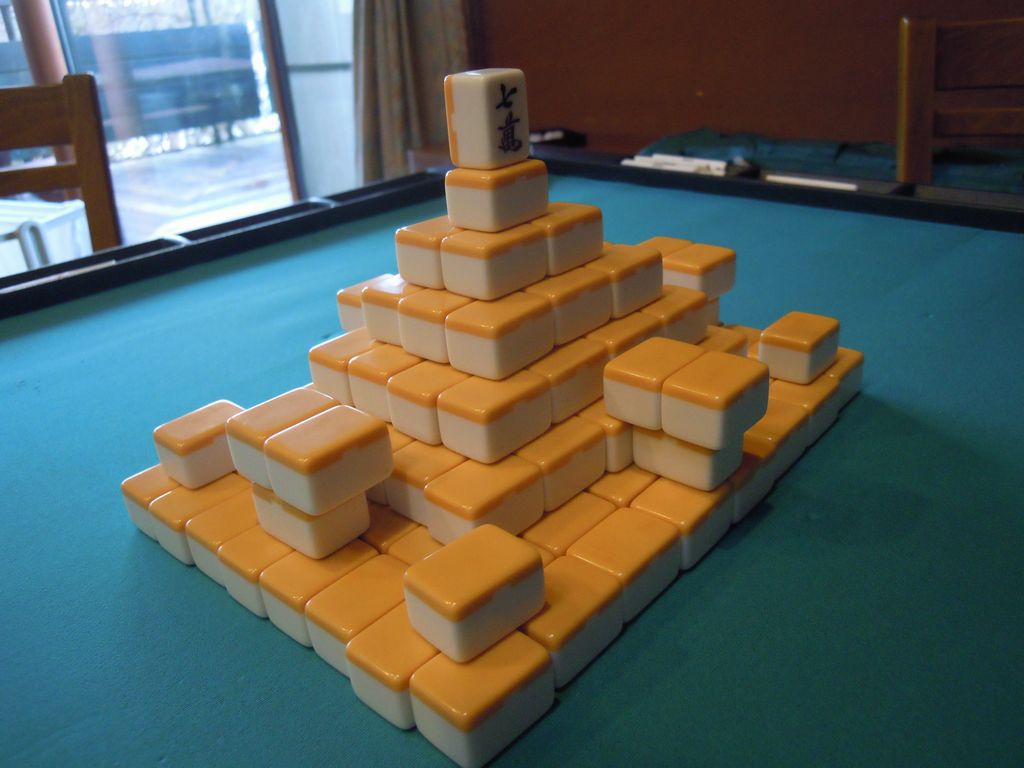 そして部屋に戻り、麻雀牌で築城するだけの仕事。