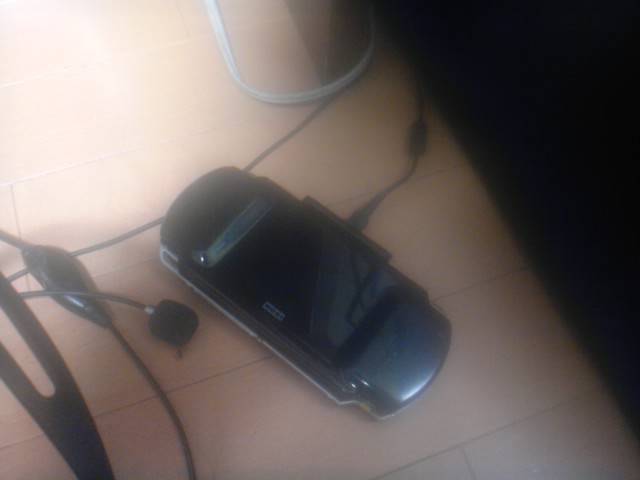 こんな感じ、ピントが「黒」PSPだから手が白い。
