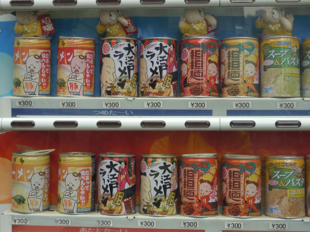 秋葉原名物「おでん缶」…の隣にある「ラーメン缶」自販機。