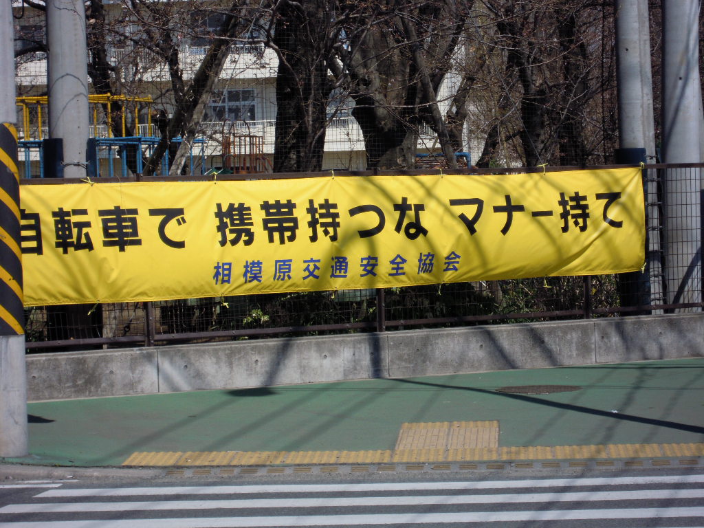 自転車で 携帯持つな マナー持て