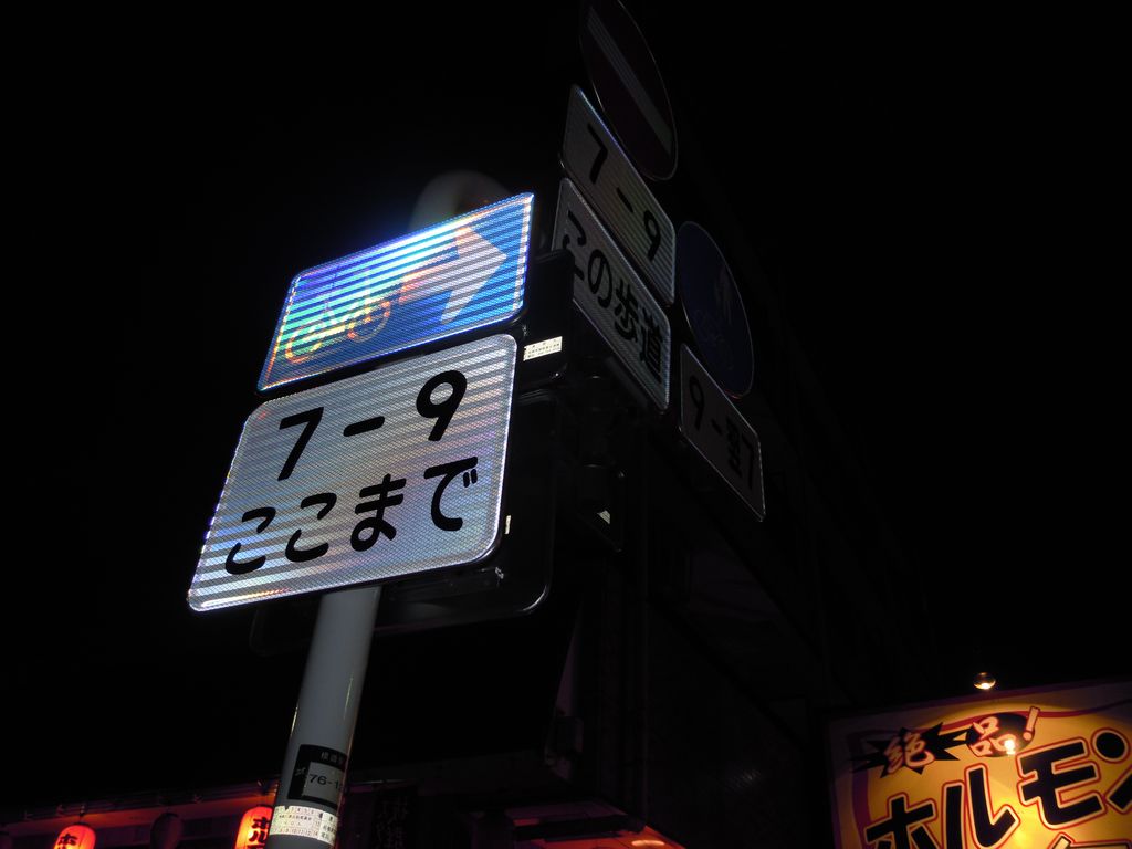 7時から9時まで、自転車と→の標識…